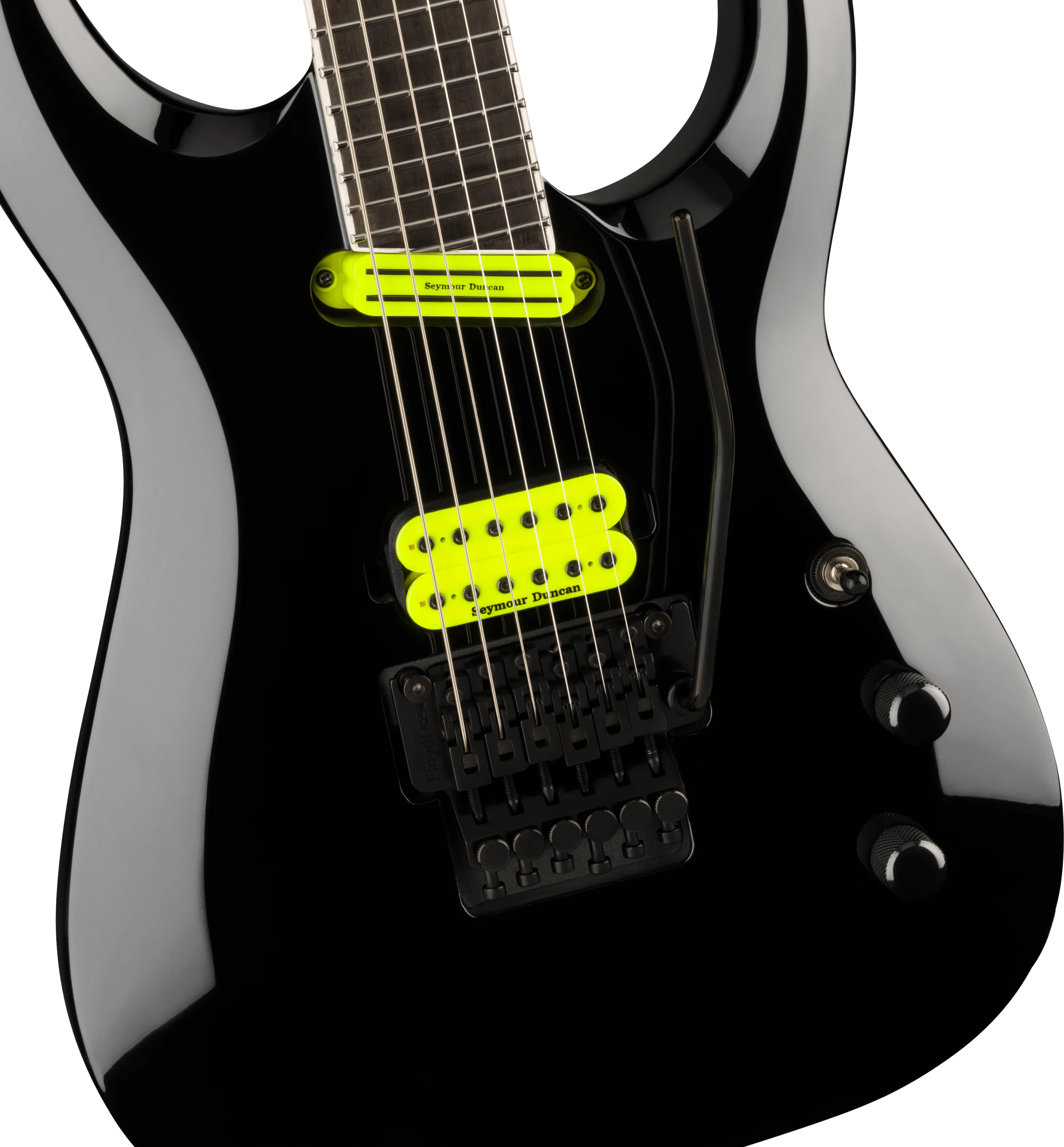 The HS pickup configuration routing features direct mount Seymour Duncan® Distortion® TB-6 bridge and Seymour Duncan® Hot Rail SHR-1 neck pickups. Designed to kick a tube amp into total overdrive, the Seymour Duncan has a perfect blend of power and tone - thick, boosted mids, big lows and fat highs. Boasting expressive pick attack and dynamics, the Hot Rail neck pickup provides deep and warm tone, but not muddy and is also hot without being distorted. Dial in the instrument's voice to taste with a three-way toggle switch, single volume control and single tone control, and radically dive bomb without going out of tune thanks to the Floyd Rose® 1000 series double-locking tremolo bridge system.